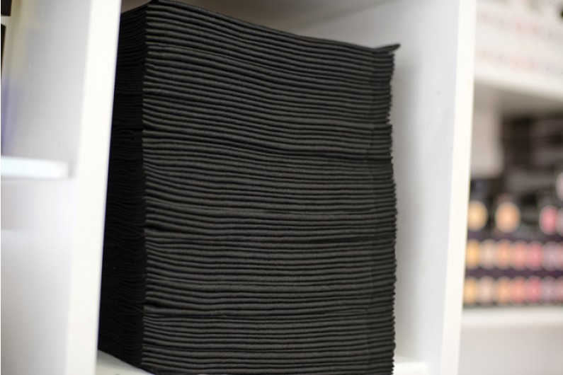 Scrummi Essential Waffle Black Hair Towels. Grösse 80x40cm. Ein Paket enthält 700 Stück.